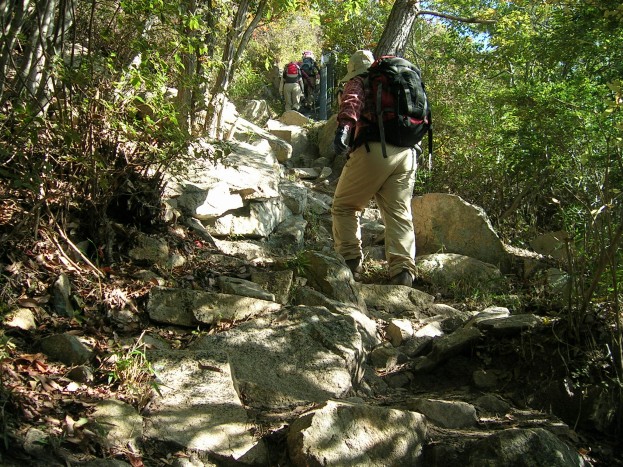 急な階段道は、雰囲気の良い普通の階段道になる。写真を撮っていると、どこから現われたのかハイカーが次々と私を追い抜いていく。