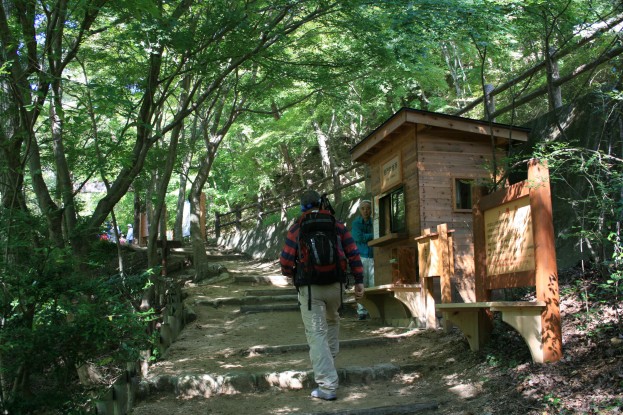 東門料金所に到着。行楽日和の日曜日でここから入り込むハイカーが多いと見たのか、いつもは無人なのに二人も係員がいる。