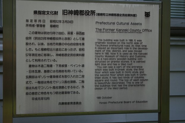 所有者・管理者 福崎町この建物は明治19年(1886年)、神東(じんとう)・神西(じんせい)郡役所(明治29年神崎郡役所と改称)として建設され、以後、当地方発展の中心的役割を果たした。もと福崎町辻川道北にあったが、昭和57年現在地に移築し、神崎郡歴史民族資料館として利用されている。